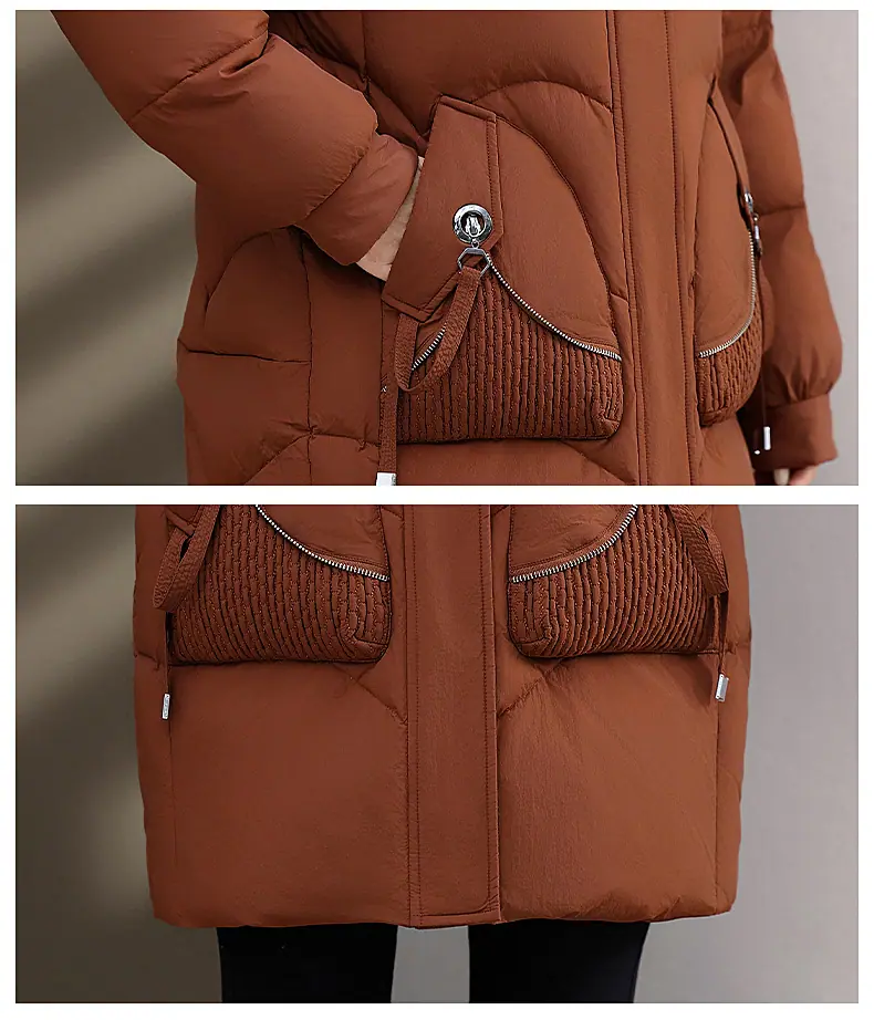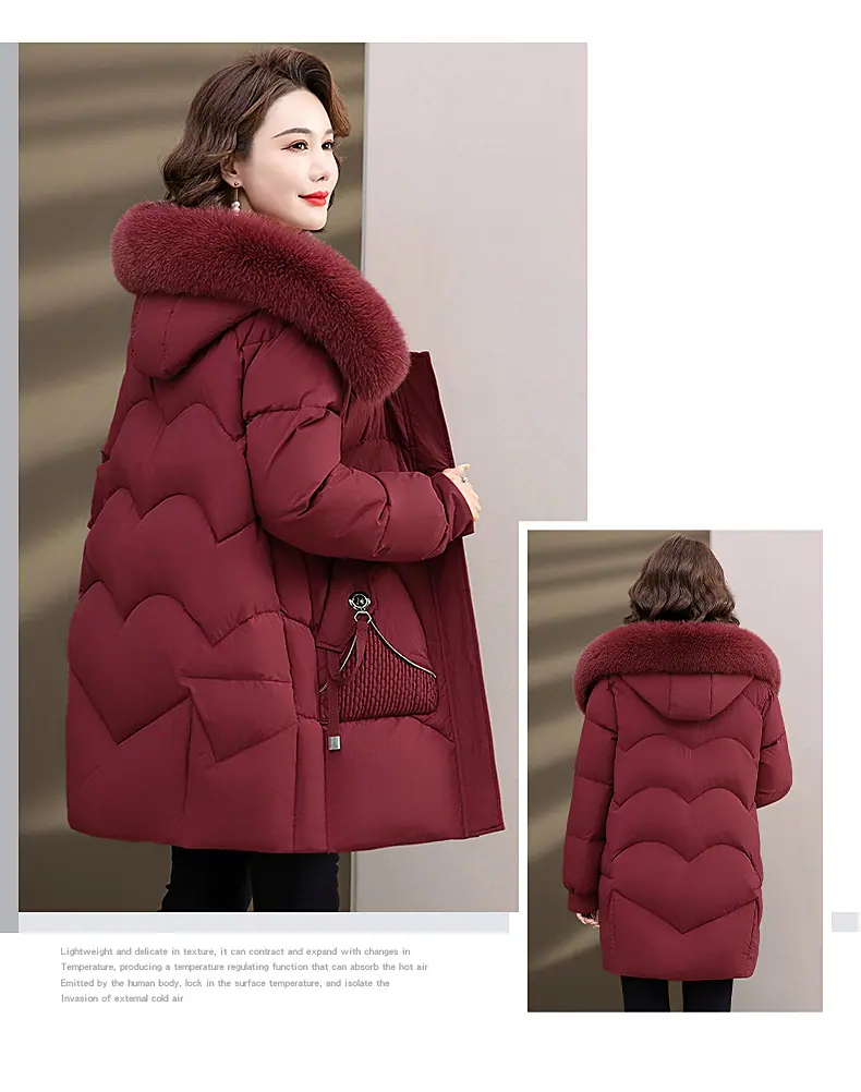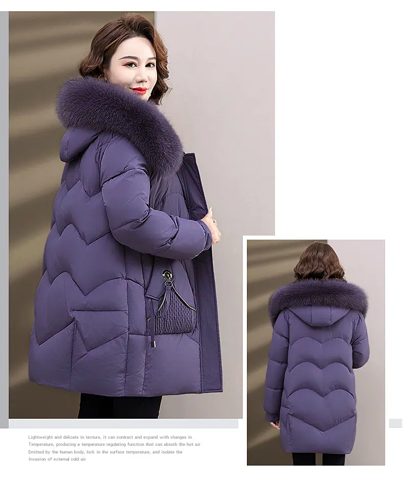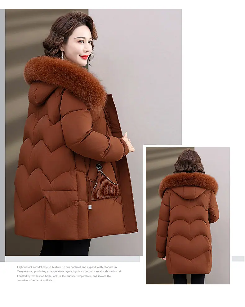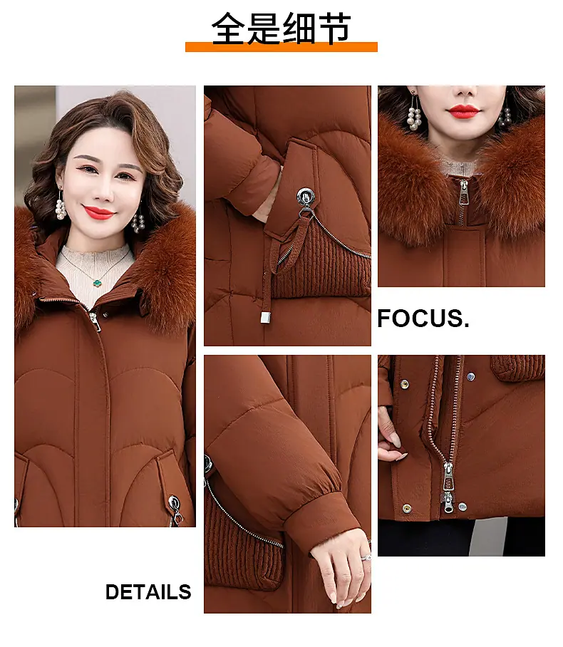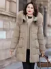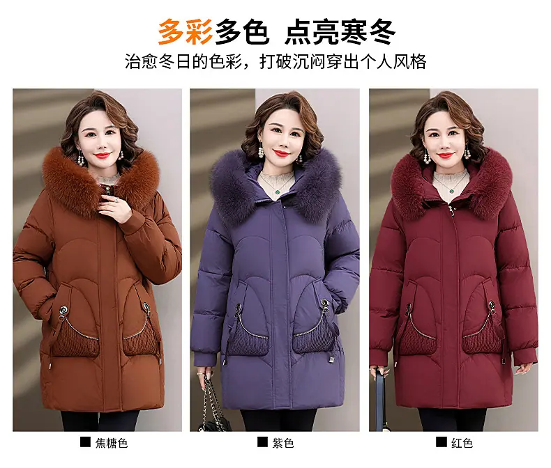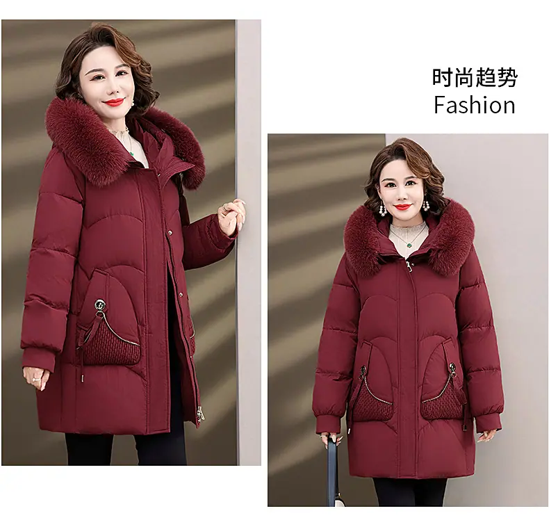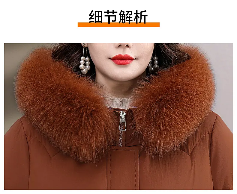 Chamarra de plumón de pato blanco para mujeres de mediana edad y mayores 2025 nuevo invierno largo medio ropa de madre abrigo grueso cálido con cuello de piel