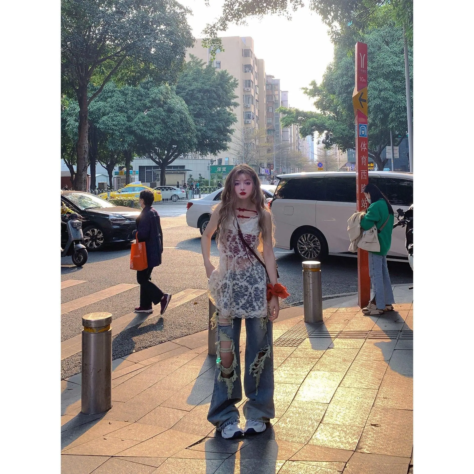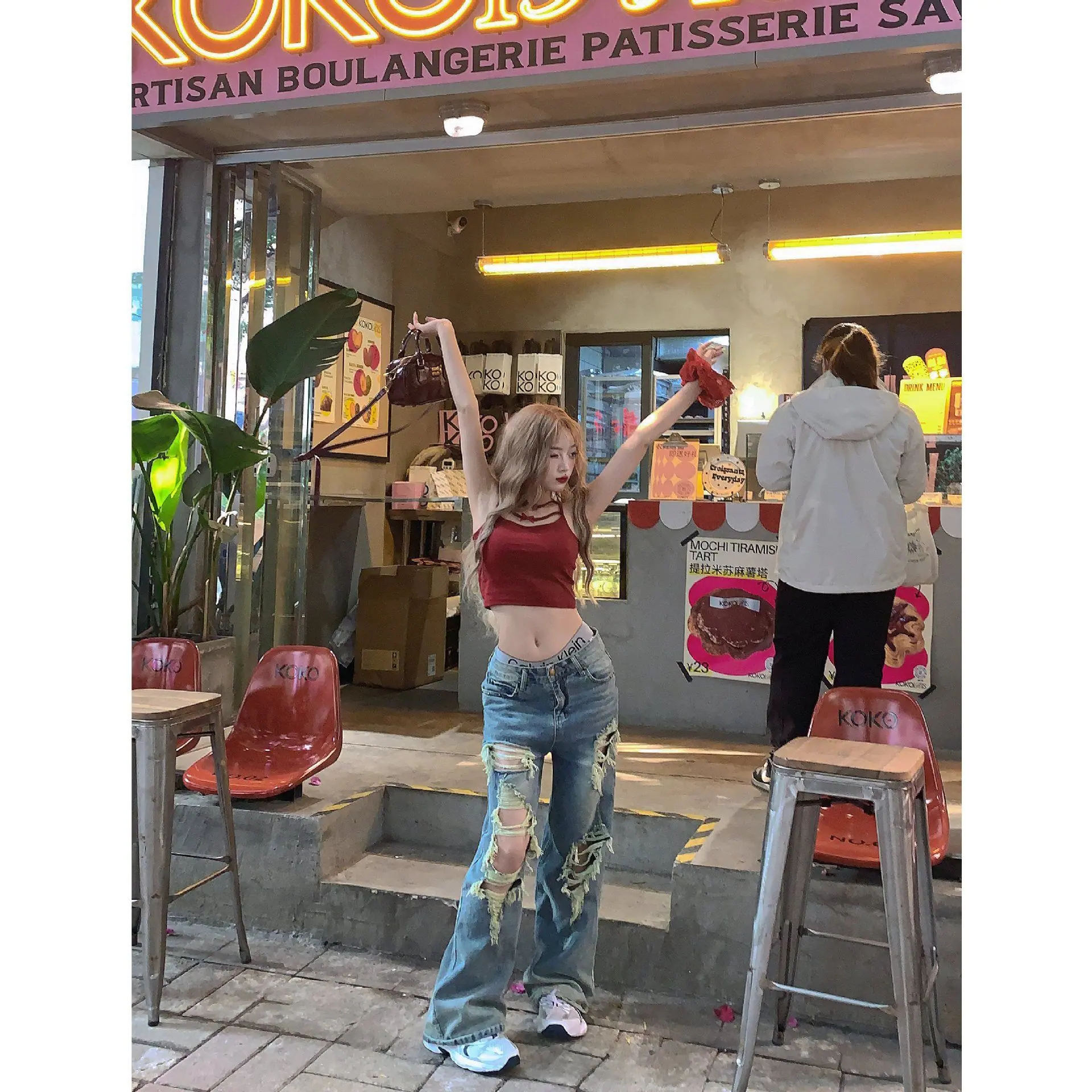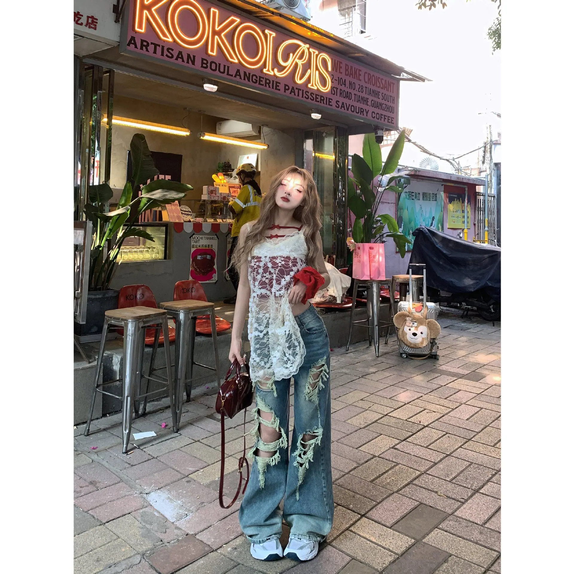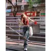 2025 Nuevo Primavera/Verano Jeans Americanos Retro Lavados Rotos Mujer Cintura Alta Sueltos Adelgazantes Pierna Recta Pantalones de Pierna Ancha