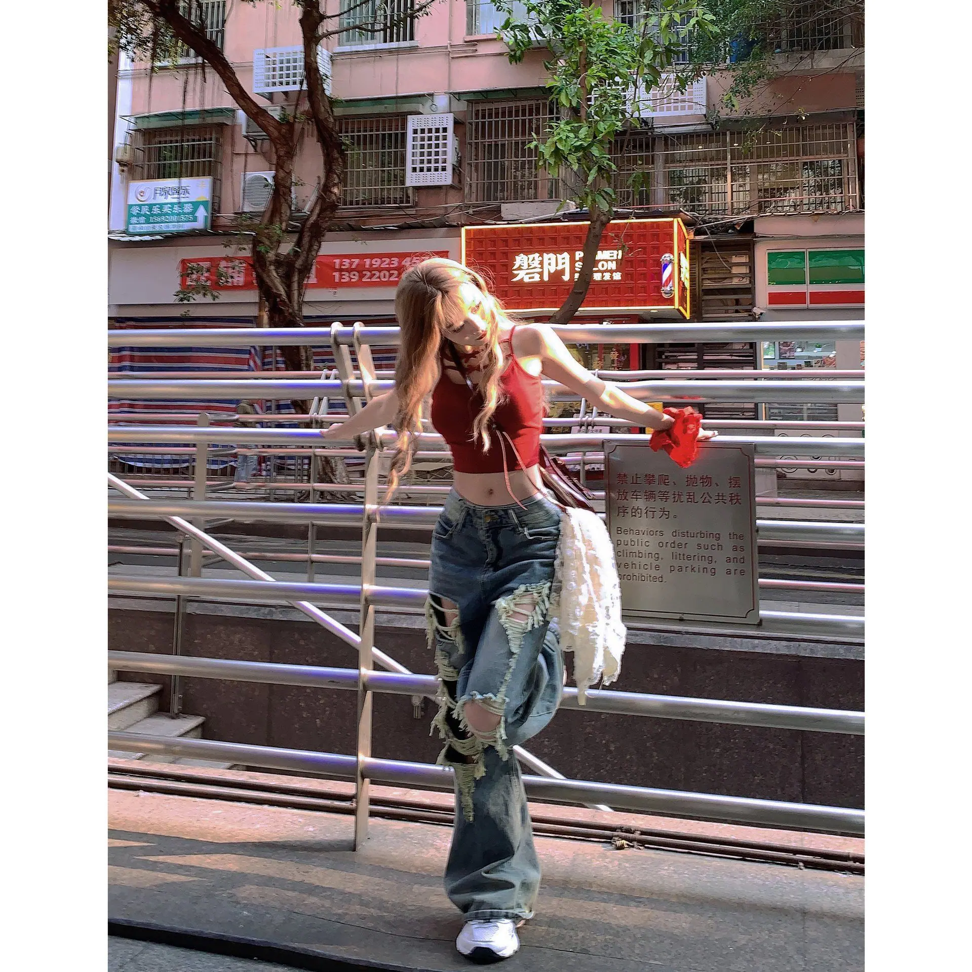Distressed + holes + buttons