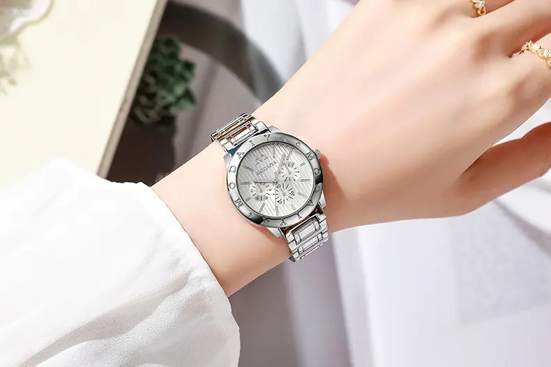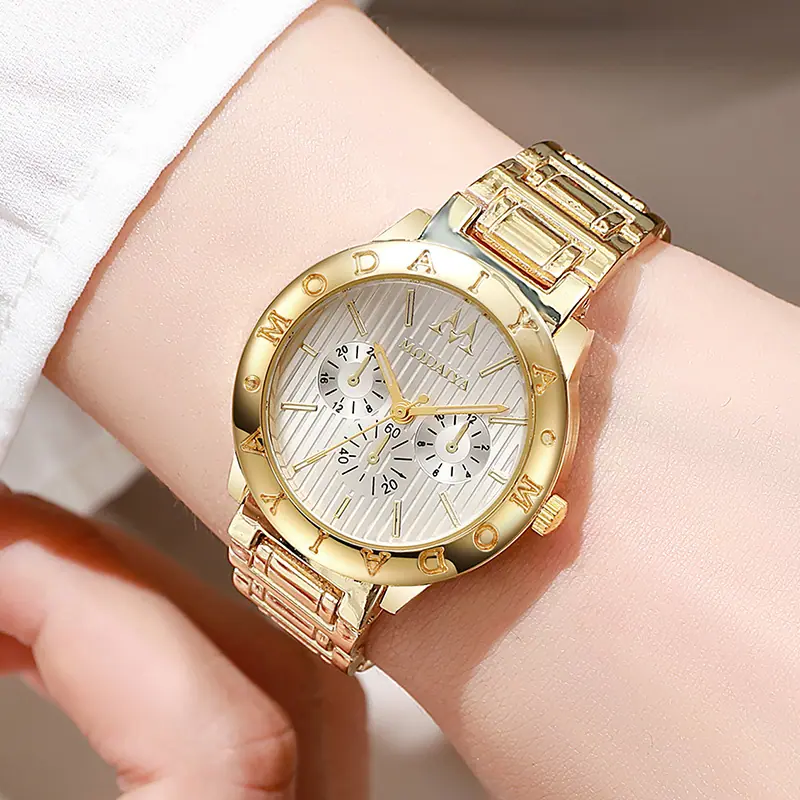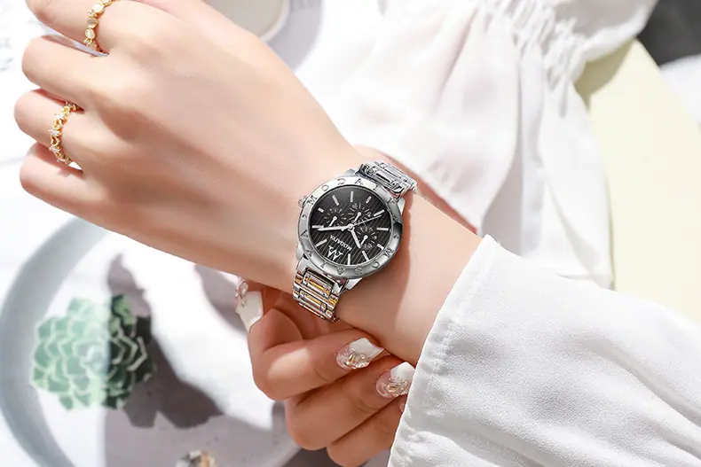Compra Reloj de pulsera para mujer IVIAPRO Simple y casual de cuarzo de acero inoxidable con cierre plegable al por mayor en Joom.pro