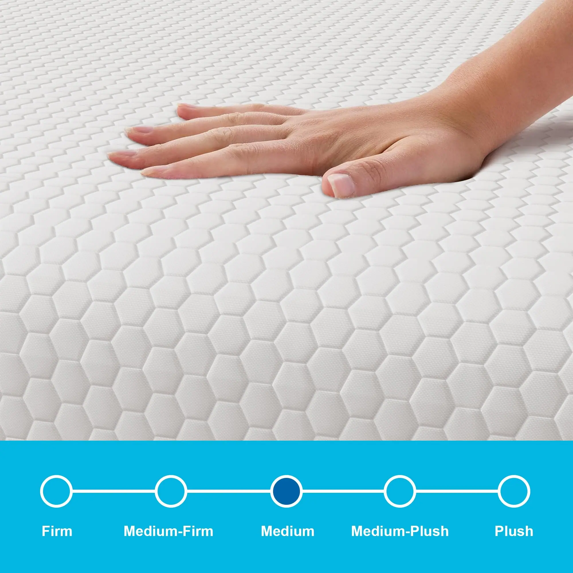 Este colchón de espuma viscoelástica con gel refrescante está diseñado para brindar máxima comodidad con una cubierta de punto suave y refrescante especial, espuma de soporte, tela inferior antideslizante y una construcción confiable, lo que lo hace ideal para habitaciones de huéspedes, habitaciones de niños o dormitorios universitarios.