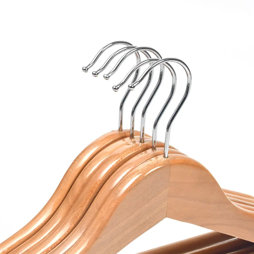 El gancho de estas Perchas de Madera está cromado, por lo que no se oxida fácilmente. Un gancho giratorio de 360 grados que se adapta a la mayoría de las barras de armario le brinda un fácil acceso a su ropa. Bienvenido a personalizar.