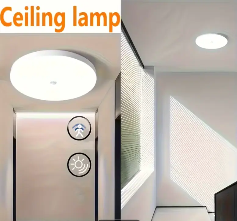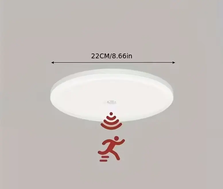 Luz de techo LED con sensor de movimiento PIR 12W 24W Lámpara moderna de superficie Montaje automático Inteligente Control por sonido CA 110V 220V Luz de panel redonda Sensor de sonido y sensor de movimiento PIR demasiado brillantes o durante el día, la lámpara no funciona Solo funciona en ambientes oscuros o de noche Después de encender la alimentación, la lámpara tarda un rato en funcionar normalmente. Por favor no apague la energía Tamaño de lámpara de techo 22CM, adecuado para 10-15 metros cuadrados. Espacio de habitación mediano como dormitorio, estudio Al encender el interruptor, luego entrar en el rango del sensor en una lámpara de luz oscura se encenderá