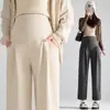 Pantalones de Maternidad para Mujeres Embarazadas Petites Otoño e Invierno 2025 Nuevos Forrados de Polar Cálido Soporte para la Barriga Dos Longitudes Pantalones Casuales Modernos