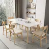 Mesa y Sillas de Comedor Rectangulares de Madera Maciza Nórdica, Combinación para Hogar, Apartamento Pequeño, Estilo Tronco, Mesa de Comedor de Tablero de Roca Grueso Blanco Puro