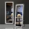 Espejo de cuerpo entero cuadrado de aleación de aluminio para colgar en la pared o de pie con soporte, para el hogar, dormitorio, vestidor, tienda de ropa, espejo grande con lámpara