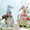2 piezas/set Gnomo de primavera figura de resina con una regadera y flores Decoraciones de primavera