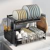 Escurridor de Platos Grande de 2 Niveles Soporte para Fregadero Escurridor de Agua Estante de Almacenamiento Accesorios de Cocina de Acero Inoxidable Organizador de Utensilios