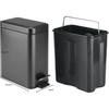 Bote de Basura con Pedal, Tapa y Cubo Interior de Acero Inoxidable para Baño, Cocina y Oficina, Cubo de Basura Doméstico de Metal con Diseño Ergonómico Negro Mate