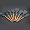 Juego de utensilios de cocina de silicona de fábrica Olla para cocinar doméstica Pala para cocinar doméstica Pala para sartén doméstica Colador Mango de haya Pala para olla doméstica