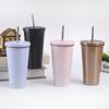 Taza de acero inoxidable 304 de doble capa con pajita de 500 ml/750 ml, taza para coche, termo para café, taza para cerveza fría
