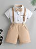 Nueva ropa infantil transfronteriza de verano de manga corta con tirantes de dos piezas, ropa de verano para niños, traje británico para bebé, traje para niño