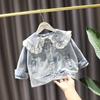 Chaqueta vaquera para niña de primavera y otoño, abrigo con lazo de encaje estilo coreano a la moda para bebé.