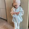 Abrigo de primavera y otoño para niñas, estilo occidental, para bebés, con personalidad infantil, moderno cárdigan deportivo con capucha y rayas coreanas.