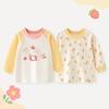 Wurib camiseta de contraste de largo medio para niña otoño 2024 camiseta infantil dulce linda de dibujos animados amigable con la piel holgada