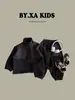 Xianao 2023 Invierno nuevo traje para niños con forro polar, conjunto de dos piezas de estilo deportivo negro para niños, ropa infantil tejida atractiva y fresca