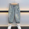 Haima Home 2025 Pantalones de mezclilla suave lavada de estilo moderno para primavera y otoño para niños Ropa coreana para niños Pantalones que combinan con todo