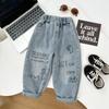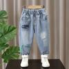 Ropa para niños jeans para niños 2024 nueva ropa de primavera para niños estilo occidental pantalones casuales rotos de primavera y otoño modernos sueltos