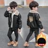 Nueva moda infantil de estilo occidental, ropa de motocicleta de estilo coreano, abrigo de cuero para niños con solapa forrada de polar, abrigo de viaje para niños engrosado