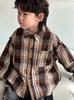 Camisa infantil de manga larga, camisa a cuadros de primavera 2024, cárdigan retro para niño, abrigo con solapa nuevo