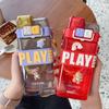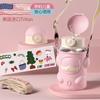 Vaso de Agua para Niños, Anticaídas, Vaso Portátil con Pajita, de Aspecto Elegante, Adecuado para Niñas, Se Puede Llevar Cruzado, Oso Mágico Cuadrado Portátil de Mano