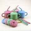Nuevo Producto Transfronterizo Taza para Gato Bebé Silicona Libre de BPA Vaso con Pajita de Silicona para Suplemento Alimenticio Vaso para Aprender a Beber Anticaída Dibujos Animados