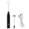 Espumador de leche eléctrico portátil de acero inoxidable 304 recargable por USB, batidor automático de huevos, mezclador de leche y café