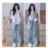 Pantalones cargo azules estilo americano para mujer, primavera y otoño 2025 nuevos de talle alto sueltos rectos petite secado rápido adelgazantes pantalones deportivos