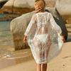 Nuevo Vestido de Playa para Mujer Transparente Sexy de Encaje de Manga Larga con Cuello en V para Mujer de Exportación Europea y Americana Transfronteriza 2024