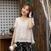 Venta al por mayor, blusa playera bordada de gasa con encaje giratorio, estilo europeo y americano, sexy, tipo cárdigan, holgada, de talla grande, para vacaciones y protección solar.