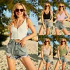 Verano 2025 Halter de Tirantes Finos para Mujer Bikini de Playa Corto Europeo y Americano Vacaciones de Playa Chaleco de Playa