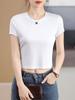 Camiseta Transfronteiriça Cor Pura Gola Redonda Feminina Manga Curta Algodão Mercerizado Camiseta Básica Slim Emagrecedora Roupa de Trabalho Novo Estilo Primavera e Verão