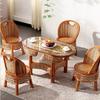 Juego de tres piezas de silla de ratán Combinación de mesa y silla Mesa de centro de ratán Silla Casual Bambú Balcón Respaldo Individual Sala de estar Juego de cinco piezas