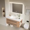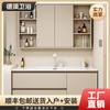 Gabinete de Baño Oculto Plegable Gabinete con Espejo Feng Shui Estación Base para Robot Aspirador Lavamanos Mesa Lavabo Cerámica Todo en Uno para Lavar