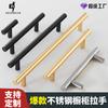 Tirador de cajón de cobre dorado para puerta de armario de lujo Nordic Light, tirador de armario de acero inoxidable americano alargado negro