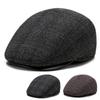 Boina de lana a cuadros para otoño e invierno, nueva, con forro polar, protección para los oídos, gorro con lengüeta de pato para hombres de mediana edad y mayores, fabricantes al por mayor