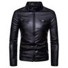 Chaqueta de cuero de PU con cuello vertical y bolsillo decorado para caballero de negocios de invierno de comercio exterior