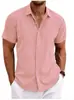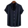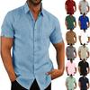 Artículo más vendido de Amazon Ebay Camisa de lino de manga corta para hombre de color sólido con solapa y botones para verano