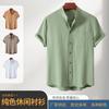 2025 Comercio Exterior Nuevo Camiseta Casual de Manga Corta para Hombre Color Sólido Cuello Mao Cárdigan Fabricante Mayorista de Camisas Casuales para Hombre