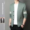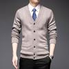 Suéter de manga larga para hombre de otoño e invierno, suéter grueso de lana mezclada, cárdigan, ropa de otoño, bolsillo, jacquard, cuello en V, abrigo