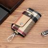 Estuche para llaves de coche con cremallera de doble capa estilo japonés, moda para hombres y mujeres, hebilla colgante, billetera universal para llaves, estuche de cuero para llaves con patrón cruzado