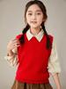 Chaleco Diamante para Niñas Primavera y Otoño 2025 Nuevo Chaleco Tejido de Lana para Estudiante Sin Mangas Algodón Uniforme Escolar Chaleco