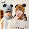 Outono e inverno infantil urso de pelúcia chapéu cachecol conjunto de duas peças forrado de lã cachecol quente bonito chapéu de pelúcia bebê