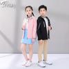 Chaqueta de primavera estilo coreano personalizada para niños y niñas, elegante y moderna chaqueta vaquera con solapa y bolsillo lateral.