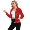 Chaqueta de Lentejuelas para Mujer Bomber Corta Brillante de Manga Larga con Cierre de Cremallera Blazer Casual de Fiesta con Bolsillos