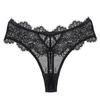 Tanga de encaje sexy europea y americana con lazo para mujer, pantalones en T de cintura baja transparentes y huecos, ropa interior deportiva sin costuras y sexy.