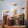 Fábrica al por mayor, frasco sellado de vidrio de borosilicato alto, tapa de bambú, frasco de almacenamiento transparente, frasco de dulces, frasco de almacenamiento de cocina, frasco de té