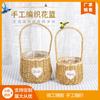 Spot rattan hand-held cesta de flores palha piquenique tecido cesta de casamento dama de honra ins mão cesta de presente cesta vazia atacado