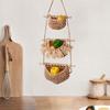 Cesta colgante de frutas al por mayor, cesta colgante de rafia tejida a mano de tres capas para verduras, cesta colgante decorativa para almacenamiento de cocina.