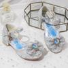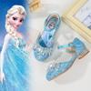 Sapatos de Salto Alto Infantil 2024 Primavera Novo Princesa Elsa Cristal Médio e Grande Infantil Meninas Desempenho Tira Sapatos